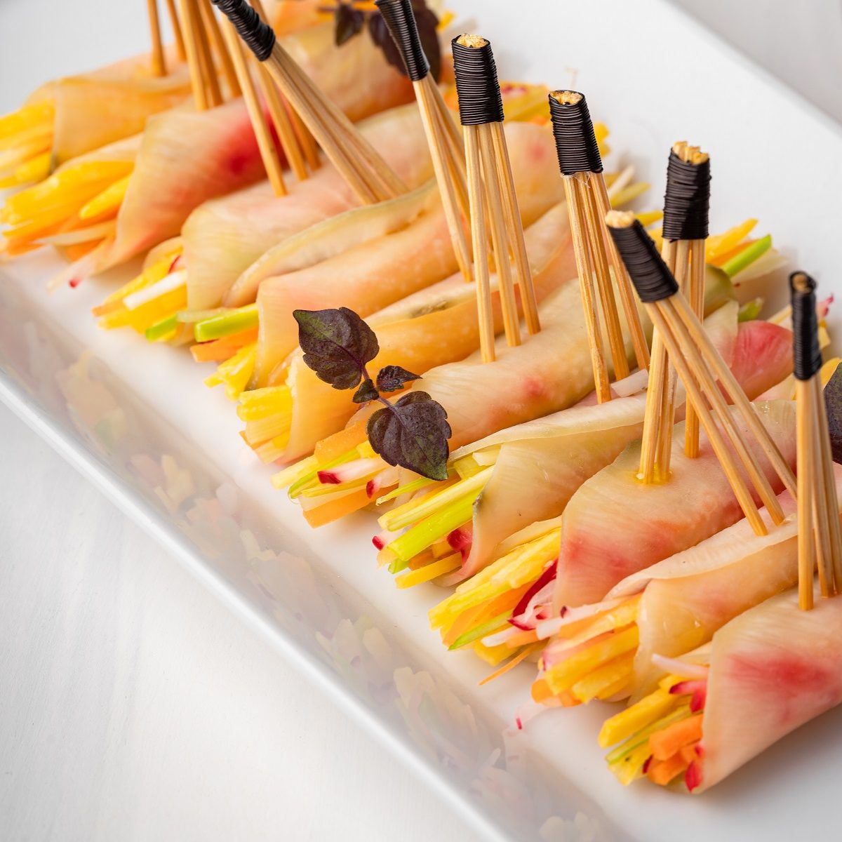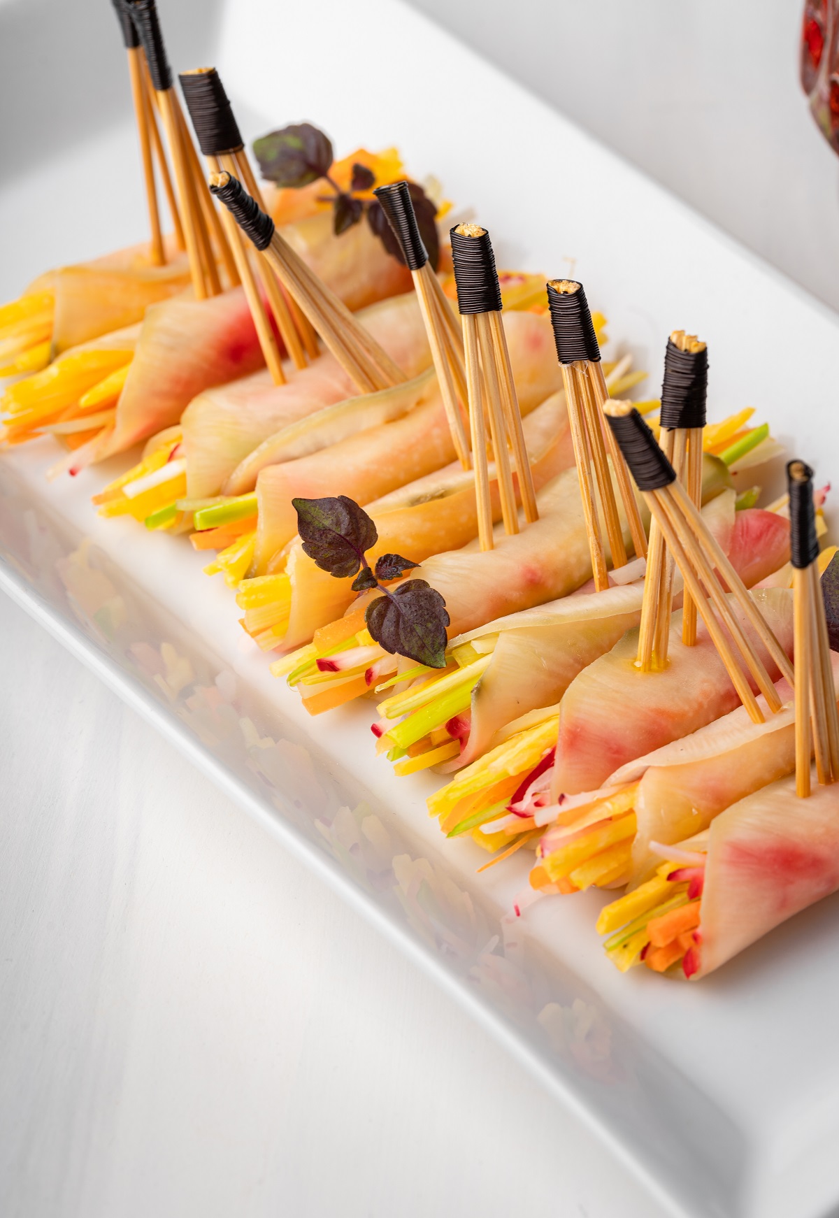 Pour sublimer des rosés primés, nous collaborons pour ce tram avec le service traiteur de