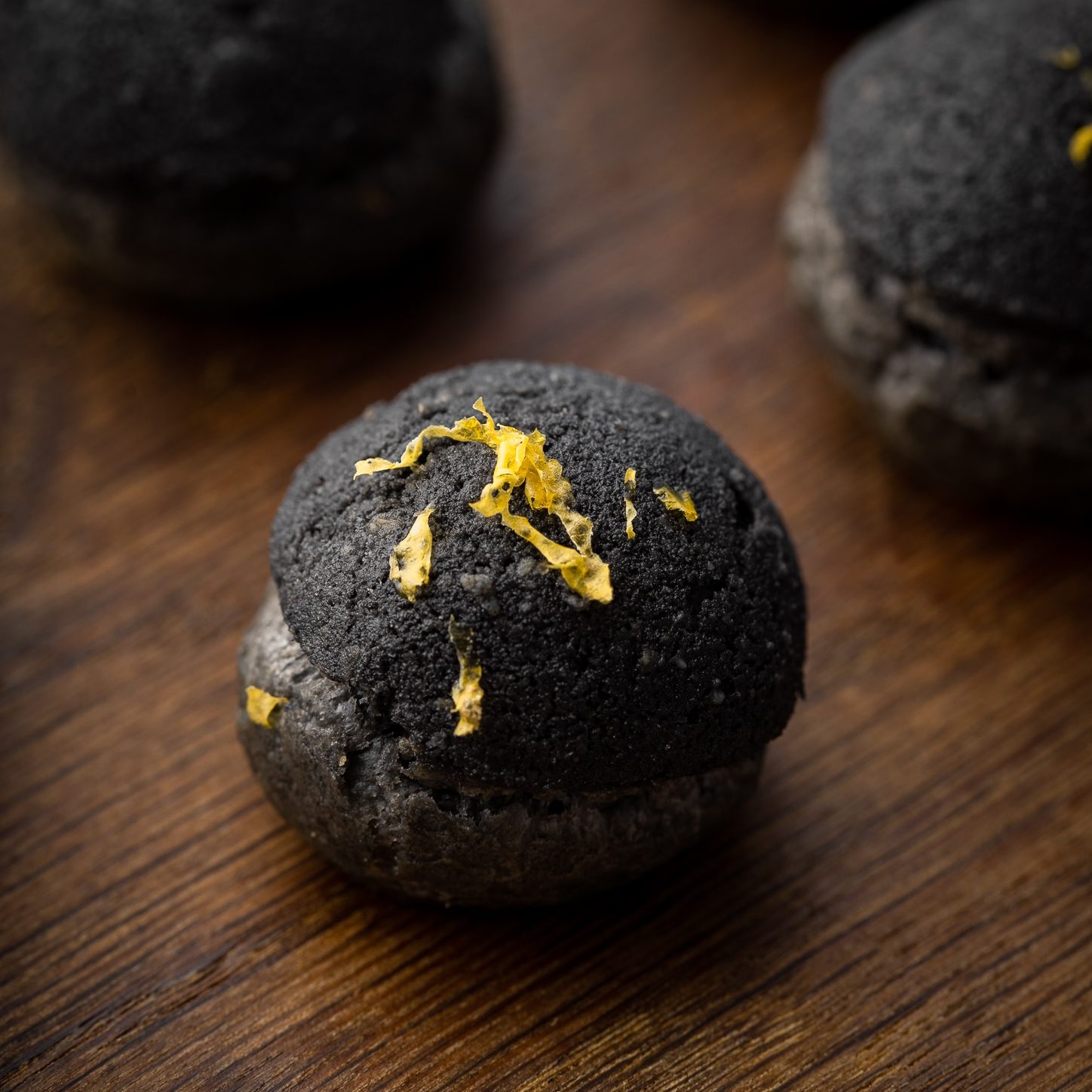 Chou au charbon végétal, crème de thon cuit et parfums d’Asie